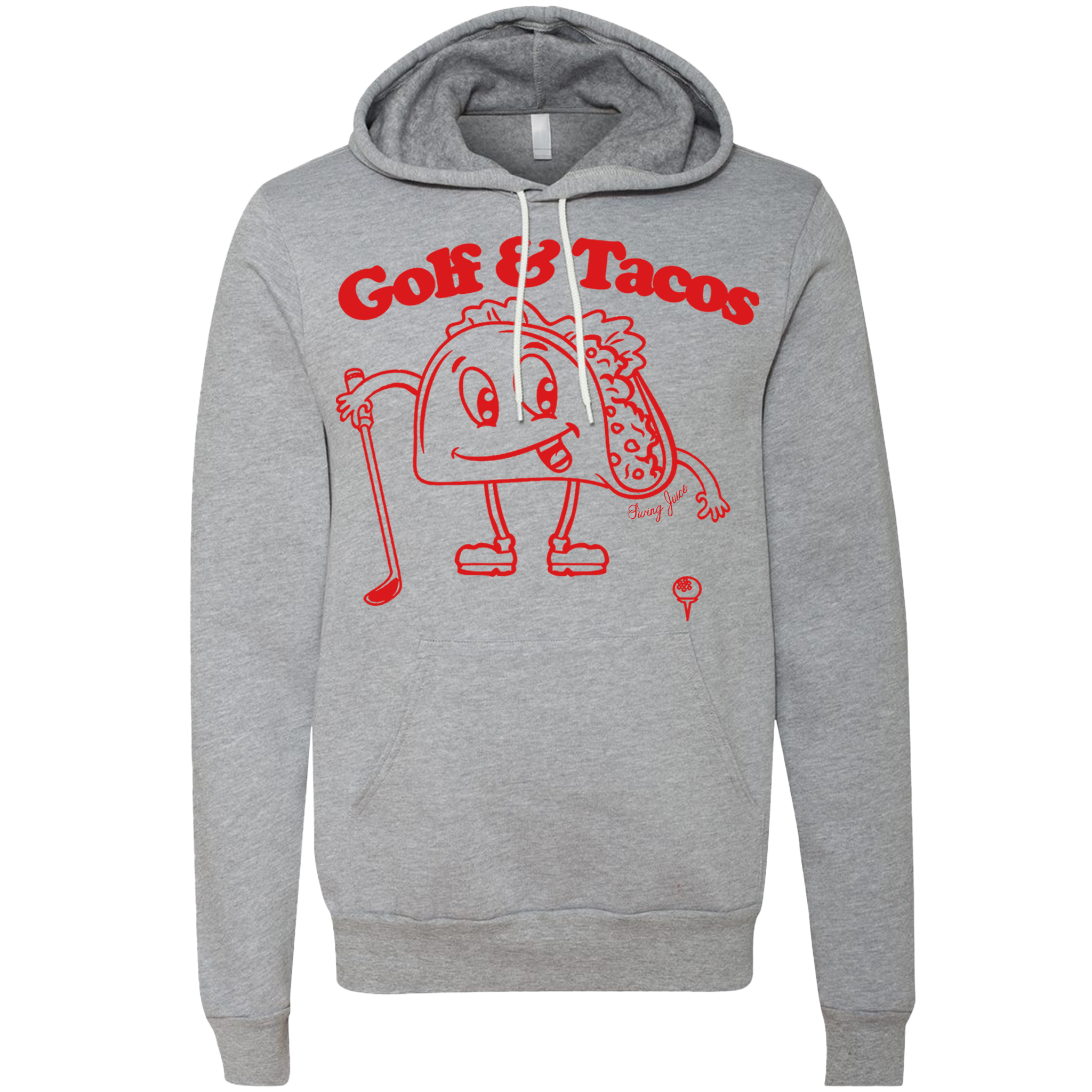 Hard to think of a better combo than Golf and Tacos. This hoodie is constructed from 50% high quality polyester, 25% combed ringspun cotton and 25% rayon, making it 100% comfortable with virtually no shrink. Effortlessly combine style and comfort. Here at SwingJuice, few things are more important to us than our food and our time on the links. The Golf and Tacos Hoodie doesn’t just make a bold statement, it represents an entire lifestyle. Getting our taco stands mixed with our bag stands is wrong, then we don’t want to be right.