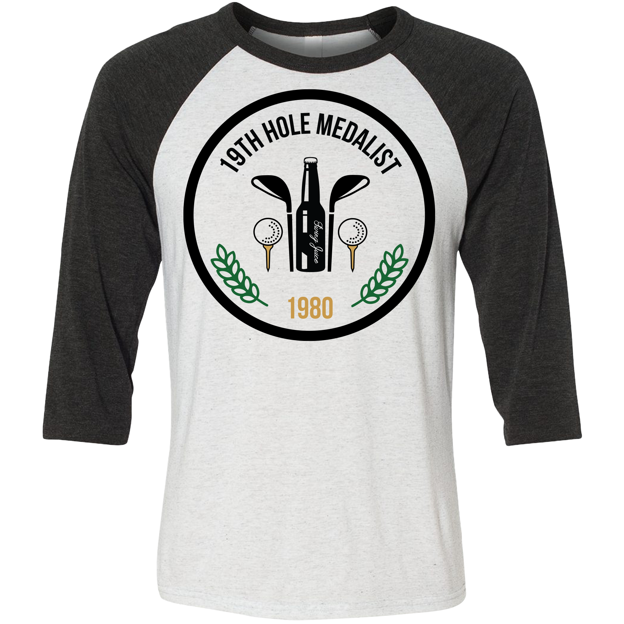 SwingJuice Three Quarter Sleeve Mens Raglan T-Shirt Golf 19th Hole Beer Medalist